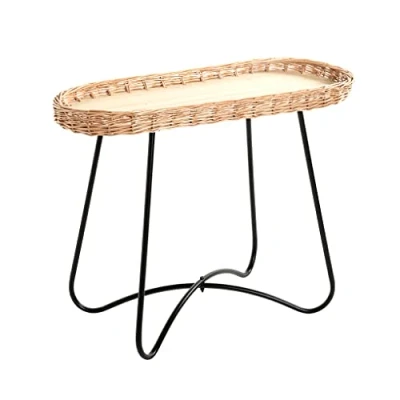 Made of steel tube painted black Shelf made of natural plywood and wicker Load capacity: 10 kg