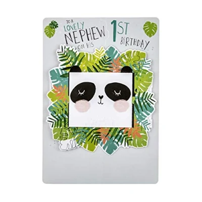 Bring on the 1st birthday panda-monium with this fun and innovative card from Hallmark for a special nephew Printed on high quality board, made of material from well managed, FSC certified forests and other controlled sources. Features a die-cut, fold-out, 3D design Comes complete with a co-ordinating printed envelope Message Inside Reads: Hope your first birthday is as sweet and special as you. Measures 22.8 cm by 15.9 cm, Within Standard UK 'Letter' Size Limits