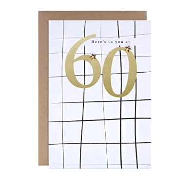 Celebrate 60 incredible years of them and show them the love with this stunning 60th Birthday card from Hallmark This card is fully recyclable, and made of material from well-managed, FSC-certified forests and other controlled sources Printed on high-quality board with elegant gold foil details and gold paper star attachments ; the card comes complete with a coordinating Brown Kraft, Hallmark Branded Envelope Message Inside Reads: This calls for a special celebration! Happy 60th Measures: 22.8 cm by 15.9 cm; Within Standard UK Letter Size Limits