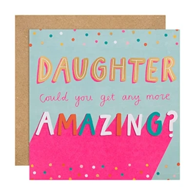 Let your fabulous daughter know just how amazing you really think she is with this eye-catching contemporary birthday card from Hallmark This card is fully recyclable, and made of material from well-managed, FSC-certified forests and other controlled sources Message Inside Reads: Enjoy Your Birthday Features Neon Inks, Gold Foil Lettering and a Co-ordinating Kraft Effect, Hallmark Branded Envelope Measures: 16 cm by 16 cm, Within Standard UK 'Letter' Size Limit