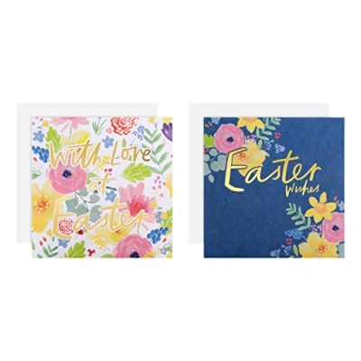 EASTER CARD PACK: Send love and kindness to all your friends and relatives and celebrate the Spring blooms with this pack of 10 floral Easter charity cards from Hallmark. The perfect way to bring joy this Easter with heartfelt greetings and festive cheer. EASTER CARDS MULTIPACK: Printed on high-quality board, this pack of 10 cards feature 2 Floral designs. 1 Design with a white background and colourful florals, and 1 Design with a blue background and colourful florals. FULLY RECYCLABLE & PREMIUM QUALITY CARD: This card is fully recyclable, and made of material from well-managed, FSC-certified forests and other controlled sources. EASTER WISH: Each card is blank inside for your own personal message, the perfect way to express your own Easter message and festive blessings. The perfect way to make their Easter extra special and full of sweetness and treats. SIZE: Each Easter card measures H16cm by W16cm, and is the perfect way to celebrate Springtime. The cards are accompanied with co-ordinating Hallmark branded, white envelopes. Within Standard UK 'Letter' Size Limits. CHARITY EASTER CARDS: Hallmark is proud to support Barnardo's UK and Ireland with a 50,000 Pounds contribution. The contribution will be paid in full by end of March 2023; irrespective of the number of Hallmark Charity cards sold.