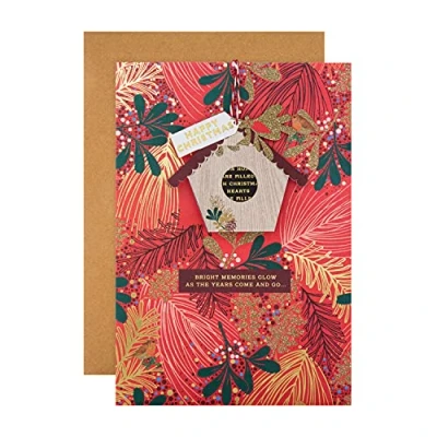 Share a warm festive wish, and celebrate all the wonderful things the season brings, with this lovely Christmas card from Hallmark This card is fully recyclable, and made of material from well-managed, FSC-certified forests and other controlled sources. Features a Hanging Birdhouse Attachment, with Concealed Message, Red and White Twine Detail, and Plain Gold Foil Elements Comes Complete with a Co-ordinating Hallmark Branded, Kraft Envelope Message Inside Reads: And homes fill with cheer as Christmas draws near For this season brings the most wonderful things. With warm wishes Measures: 22.8 cm by 15.9 cm, Within Standard UK 'Letter' Size Limits