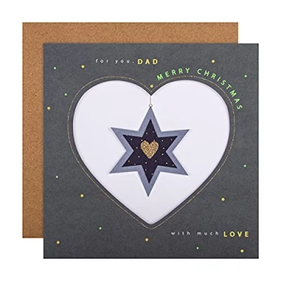 Let Dad know you think he's a total star, at Christmas time and always, with this clever and stylish, 3D effect card from Hallmark This card is fully recyclable, and made of material from well-managed, FSC-certified forests and other controlled sources. Features a Die-Cut Design, a 3D Effect Star Attachment and Gold Foil Details Card Comes Complete with a Co-ordinating Hallmark Branded, Kraft Envelope Message Inside Reads: A Christmas thank you for every happy memory Card Measures: 20 cm by 20 cm, Within Standard UK 'Large Letter' Size Limits