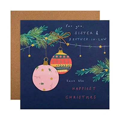 Celebrate a special sister and brother-in-law, and bring them a little extra festive joy, with this gorgeous card and paper chain insert from Hallmark This card is fully recyclable, and made of material from well-managed, FSC-certified forests and other controlled sources. Features a 3D Effect Attachment, a Natural Twine Bow Attachment and a Multi-Patterned, Striped Paper Insert Complete with Instructions for Turning It Into Paper Chains Card Comes Complete with a Co-ordinating Hallmark Branded, Kraft Envelope Message Inside Reads: Wishing you a Christmas full of all the wonderful things you deserve Measures: 19.8 cm by 19.8 cm, Within Standard UK 'Large Letter' Size Limits