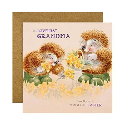 Show Grandma how special she is to you with this cute Country Companions Easter card from Hallmark. This card is fully recyclable, and made of material from well-managed, FSC-certified forests and other controlled sources Card features pink foil lettering and comes complete with a Co-ordinating Kraft Effect Printed Envelope Message Inside Reads: You bring so much sunshine with everything you do, there's no other grandma who's quite as nice as you With Love Measures 16cm by 16cm, Within Standard UK 'Letter' Size Limits