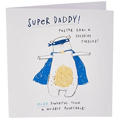 Is it a bird? Is it a plane? No! It's a Super Daddy who deserves celebrating with this adorably cute Father's Day card; from Hallmark This card is fully recyclable, and made of material from well-managed, FSC-certified forests and other controlled sources Features blue foil details; card comes complete with co-ordinating, bright blue, Hallmark branded envelope Blank Inside for Your Own Personal Message Measures: 18 cm by 16 cm; Within Standard UK 'Letter' Size Limits