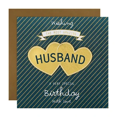 On your Husband's birthday, remind him how much his love and support fills your heart with joy, by sending him this stunning card; from Hallmark This card is fully recyclable, and made of material from well managed, FSC certified forests and other controlled sources Features a 3D add on and textured gold foil details; Comes complete with a co-ordinating Gold and Brown, Hallmark branded envelope Message Inside Reads: You're my husband, my best friend and my partner in everything, together we are the perfect team. I love you. Happy Birthday Measures: 19.8 cm by 19.8 cm; Within UK 'Large Letter' Size Limits