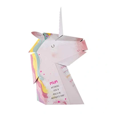 Make sure your Mother's Day wish for your mum is truly unique with this fabulous 3D unicorn card from Hallmark This card is fully recyclable, and made of material from well-managed, FSC-certified forests and other controlled sources. Card features a Pop-Up 3D Design along with Neon Inks Card comes complete with a Co-ordinating Pale Pink Envelope Message Reads: Wishing you a Magical Mother's Day! Measures: 22.8 cm by 15.9 cm; Within Standard UK 'Letter' Size Limits; Assembled Card Measures: 22 cm by 12 cm by 7.5cm