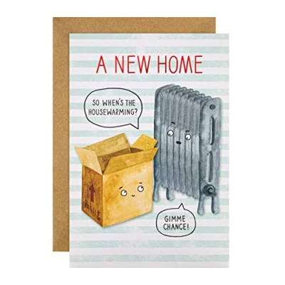 Welcome them to their new home with a smile with this funny card from Hallmark Printed on high-quality board, this card features red foil details; Comes complete with a co-ordinating kraft, Hallmark branded envelope This card is fully recyclable, and made of material from well managed, FSC certified forests and other controlled sources Message Inside Reads: Congratulations! Card Measures: 20.2 cm by 13.8 cm, Within Standard UK 'Letter' Size Limits