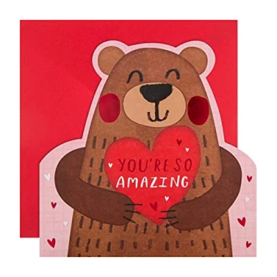 Show the one you love that you think they're bear-y amazing, with this adorable Valentine's Day card from Hallmark This card is fully recyclable, and made of material from well-managed, FSC-certified forests and other controlled sources Printed on high-quality board, the card features die cut details, red foil details, and a 3D attachment; Comes complete with a co-ordinating red, Hallmark branded envelope Message Inside Card Reads: And I'm so lucky! Happy Valentine's day Card Measures: 19.8 cm by 19.8 cm, Within Standard UK 'Large Letter' Size Limits