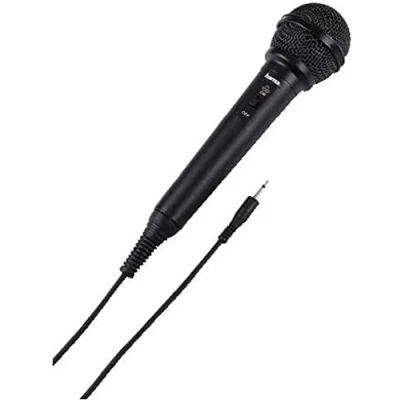 Hama Dynamic Microphone DM 20 with cardioid characteristics, cable length 2.5m, black Dynamic vocal microphone DM 20, for hobby and leisure use Versatile in use, e.g. for children to sing, karaoke with friends and family, messenger voice transmissions for e.g. Skype, video dubbing for platforms such as YouTube, cable length 250 cm Cardioid polar pattern for focused sound recording, impedance: 600 ohms, sensitivity: -75 dB-SPL (1kHz), frequency range: 100 - 10,000 Hz 1 dynamic microphone "DM 20", incl. adapter 6.35 mm