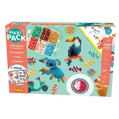 A great box: more than 7000 Hama Midi beads in 30 different colours. Discover 2 large plates (square and round), 1 small plate (star), as well as 1 bead sorter, 1 inspiration book with 8 funny models to reproduce, ironing paper and instructions. HOW TO PLAY: Place the beads on the plate. Cover the design with the ironing paper and then iron with a very hot iron without steam. Ironing is left to the care of adults. Remove the resulting pattern from the base plate which is reusable. Fun creative hobby: Hama games are designed for children's intellectual and motor development. In the first years of life, the little ones learn to recognize colors, to grasp objects, to distinguish shapes, to have a first idea of quantities, etc. TOY ALONE OR IN FAMILY: Guided by their parents, children will have fun gaining confidence. Activities that develop sharing, dexterity and stimulate curiosity!, Manufacturer: HAMA