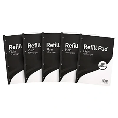 A4 Refill Pad, plain Punched with 4 holes: easily file away your notes Plain 70 gsm paper 160 pages per pad Pack of 5