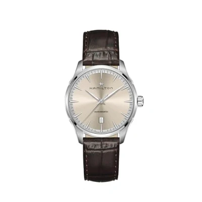 With a sophisticated design, the Jazzmaster Auto is a contemporary timepiece to suit your day from business time to night-out. This Analogue watch features a calendar function: Date and is equipped with Luminous Hands , Luminous Numbers and has a Swiss Made Movement High quality Brown Leather strap, measuring 21 cm in length and 20 mm in width, with a Buckle Case diameter: 40 mm,case thickness: 11 mm, case colour: Silver and dial colour: Beige Water resistant: 5 bars-Weight: 72 g The watch is delivered in an original gift box and has a warranty of 2 years