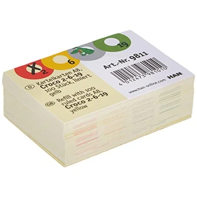 Pack quantity: 100 Colour: Yellow Item Name: Index Cards for Croco 2-6?19 Headline: No Material: Filing card