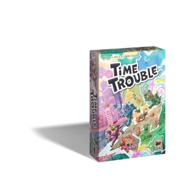 Time Trouble is a cooperative real-time family game with great play material for 2 - 4 people, in which you navigate four adorable characters through different levels by placing transparent cards on top of each other Your goal is to catch the fluffies that mess up the timeline With every harder level, you travel through time to master new challenges Together you need to coordinate your actions and use the skills of the figures to succeed - but you only have a few seconds to carry out your plans From 9+ years, 20-30 minutes, for 2-4 players, by C. Rossi and A. Zucchini, game in German, Manufacturer: Hans im Glück