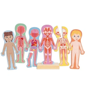 REALISTIC DETAILS: The 63-piece set consists of a wooden base, a body silhouette with magnets for a boy and a girl, a skeleton, a circulatory system, a muscle system and a nervous system with organs, as well as six double-sided cards with illustrations of the human body. SCIENTIFIC SKILLS DEVELOPMENT: The set promotes the development of scientific, technology, engineering, artistic and mathematical skills, as well as hand-eye coordination, fine motor skills and problem-solving strategies. LEARNING ANATOMY: The six cards with illustrations of the human body teach children the different systems of our body and how to recognize them. SIX DIFFERENT PLAY POSSIBILITIES: Kids learn about different levels and different body parts by correctly assembling our body parts on the magnetic silhouette using the six puzzles., Manufacturer: Hape