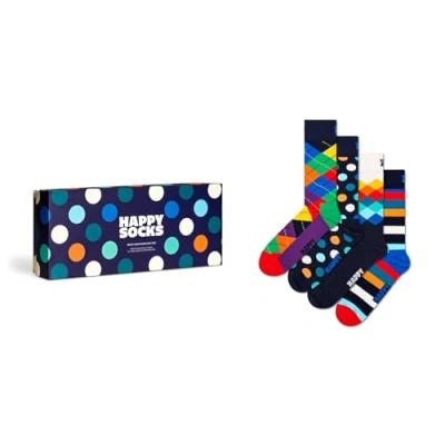 Happy Socks Gift Set Unisex 4 Pack Mixed Pattern Socks Blue XMIX09 6050