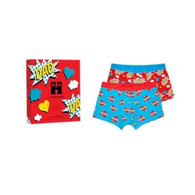 Happy Socks Men's 2 Pack Super Dad Boxers Gift Set Boxer Shorts, Blue, Red, Medium