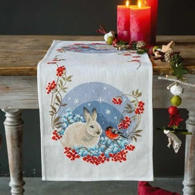 Aida table runner with diagram, embroidery canvas: 100% cotton, thread: 100% DMC cotton, 4.4 stitches/cm, thread card, instructions in eight languages, enlarged diagram, needle, photo, made,, Weight: 0.220462262 Pounds, Manufacturer: Verachtert