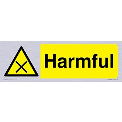 W904 : Harmful This sign is made from plastic semi-rigid silver Comes with4mm Corner Holes. 31 Sign Text: Harmful