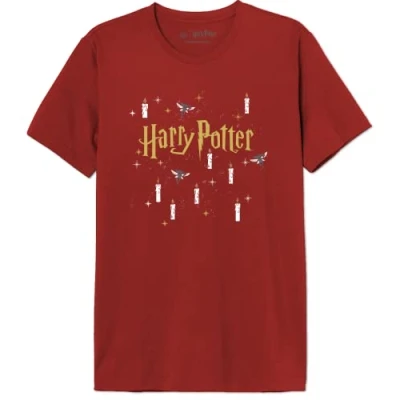 Harry Potter Harry Potter Logo With Candels Christmas MEHAPOMTS411 Men's T-Shirt, Red, Size S 100% official licensed products Machine wash at 30°C inside out