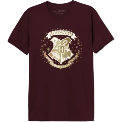 Harry Potter Blazon Hogwarts Stars Holidays MEHAPOMTS413 Men's T-Shirt, Burgundy, Size XL 100% official licensed products Machine wash at 30°C inside out