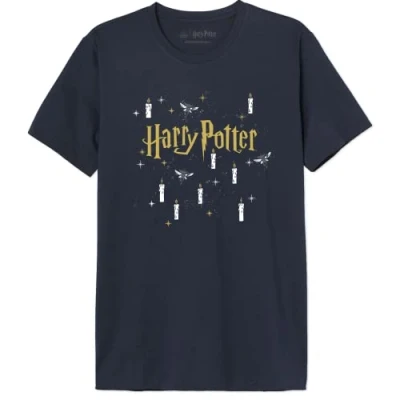 Harry Potter Harry Potter Logo With Candels Christmas MEHAPOMTS411 Men's T-Shirt, Navy, Size S 100% official licensed products Machine wash at 30°C inside out