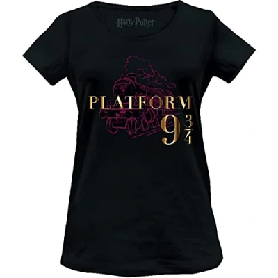 Harry Potter Women's T-Shirt "Platform 9 3/4 with Train" Reference: WOHAPOMTS332, Colour: Black, Size S 100% official licensed product