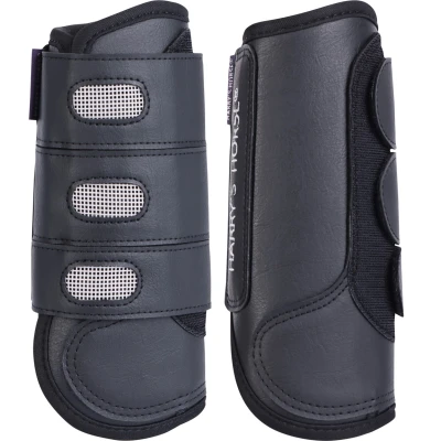 These eventing protection boots are lightweight, flexible, breathable, have a non-slip inner lining and are made of "PVC-leather" outer material. They have a fine fit, strong velcro closures and are very comfortable for the horse. The optimal fit gives the horse plenty of freedom of movement. The hard outer shell protects against tapping and has a flexible polycarbonate plate on the tendon for extra protection desired during eventing sports.