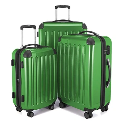 HAUPTSTADTKOFFER Alex Hard Shell Suitcase Trolley Travel 4 Double Wheels Extension, Green, Set, set