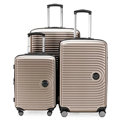 Comfortable set of 3: the hand luggage (55 x 40 x 20 cm) is optimally aligned with the hand luggage regulations of common airlines. The medium travel suitcase (68 x 45 x 25 cm) is ideal for week-long holidays. The large hard shell trolley (77 x 50 x 30 cm) offers generous space for family holidays. Reinforced suitcase extension of 8 cm for generous packing volume for all suitcase sizes. LIGHTWEIGHT MATERIAL: High-quality matte hard shell made from 100% ABS. Impact-resistant, stable and flexible. Modern look: flat shaped body in dynamic design. Perfectly organised: a zipped mesh divider (mesh on both sides) stabilises the luggage. A zipped intermediate base (+ 2 zipped mesh pockets for utensils) and the zipped mesh divider divide the case into 3 compartments. Interior: tear-resistant polyester, extremely easy to clean. Must have: integrated TSA combination lock embedded in the case shell. The locking mechanism meets the highest safety standards. Easy to use, protects your luggage from unauthorised access. Comfortable transport: telescopic handle with push button and precise step-adjustable mechanism (3-step). Ergonomic carry handles on top and long sides. 4 recessed rubberised double wheels for more packing volume, extremely stable, smooth, manoeuvrable and quiet.