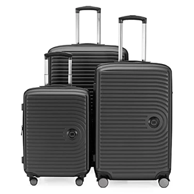 SET OF 3 SUITCASES: Hand luggage (55 x 40 x 20 cm) meets the requirements of the regulations on hand luggage of most airlines. The medium size suitcase (68 x 45 x 25 cm) is perfect for one week-long trips. The large suitcase (77 x 50 x 30 cm) offers plenty of room for family vacations. Reinforced 8 cm extension for all suitcase LIGHTWEIGHT MATERIAL: High-quality hardshell made of 100% ABS, mat. Impact-resistant, sturdy and flexible PERFECT ORGANIZATION: A zipped separation net stabilizes the luggage. A zipped intermediate bottom and a zipped separation net divide the suitcase into different compartments. Tear-resistant polyester, easy to clean MUST HAVE: Integrated TSA combination lock. The locking mechanism meets the highest security standards. Easy to use, protects the luggage against unauthorized access CONVENIENT FOR CARRYING: Telescopic handle with push button. Ergonomic carrying handles on the sides. 4 recessed, rubber double wheels, extremely stable, smooth and quiet