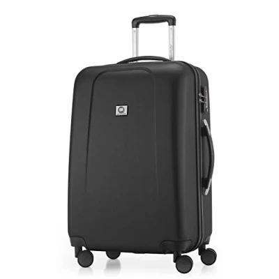 For short holidays: The medium-sized travel suitcase (65 x 43 x 26 cm) is a compact and extremely practical companion for a week-long short break - also suitable for bus and train trips. At check-in, its 3.5 kg is particularly easy to handle. SOLID MATERIAL: Shiny ABS surface with polycarbonate coating. The suitcase is particularly STABLE, SHOCK RESISTANT and UNBREAKABLE. Thanks to the shock-absorbing protective corners, this cabin baggage keeps its shape, even in case of rough handling COMFORTABLE TRANSPORT: 4 rubberized wheels, rotating 360 °, particularly quiet and easy to handle. They offer pleasant walking comfort on any surface. The fully retractable TELESCOPIC handle is extremely stable and ensures an upright posture. HANDLES on the top and side allow easy transport MORE VOLUME: Extra space for souvenirs thanks to the generous expansion of the volume (around 20%) by pulling on a zipper MORE SECURITY: Integrated combination lock protects personal items against unauthorized access. The lock meets the highest security standards for luggage and is easy to use