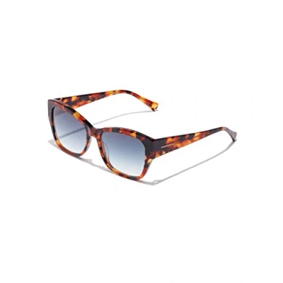 A timeless and elegant design in a classic style. A combination of a square acetate frame with cat eye touch, Havana print and dusk blue lenses with gradient tint. Stylish triangular temples with inner metal temples underline and highlight the design. TR18 lenses backed by Eastman, one of the world's leading companies in copolyester technology. The material is environmentally friendly and provides a unique balance between brightness and shock resistance. 3 glasses category. Lenses with UV 400 protection Frame made of high-quality cellulose acetate, which ensures maximum shock resistance and durability Hawkers Original product. The case includes a microfibre pouch, a box and a number of decorative stickers. Sunglasses for women. Dimensions of glasses width: 14.2 cm, lens height: 4.32 cm, lens width: 5.5 cm, bridge width: 1.7 cm; arm length: 14 cm