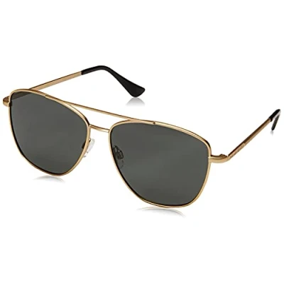 The LAX sunglasses with matte gold metal frame, black polarised lenses and black temple ends are a classic aviator style model that are essential for any occasion. Polarising sunglasses: protects against reflections, provides greater sharpness and contrast while preventing eye fatigue. Sunglasses filter category 3, the colour is dark enough to be worn outdoors in strong sun. They absorb between 82% and 92% of sunlight. Lens material: the lenses are made of polarized bio-tac material. 100% UV protection. Lens Color: Black Lens design: solid colour. Frame Material: Metal Frame Color: Gold Temple Color: Gold Genuine Hawkers Product. The box comes with microfibre case and box Unisex model. Dimensions: front 140 mm, shackle 140 mm, bridge 14 mm, height 47 mm.