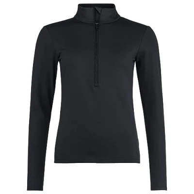 Basic design and fit Classic stand-up collar Half zip with chin guard Glazed black SAB center front zipper Shoulder seams with decorative merrow stitch