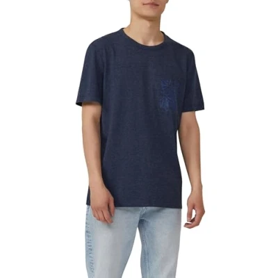 Heather Cotton Blend T Shirt with Artwork, Deep blue, XL