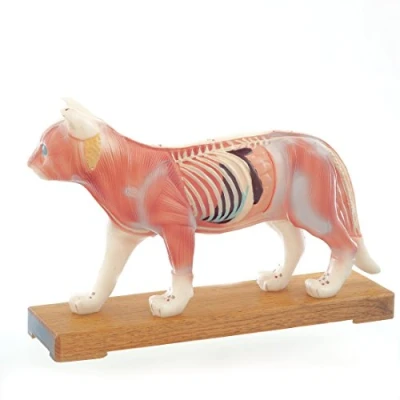 Two-sided cat acupuncture model Length 28 cm x Height 19 cm x Width 8 cm Side 1 shows the most important acupuncture points Side 2 shows rough representation of inner organs, skeleton and muscles Coloured