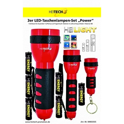 Heitech Power LED Torch Set of 3 with 6 AA Batteries Red