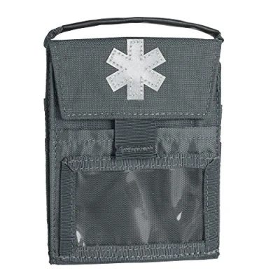 Tri-fold construction design. Compact size to fit most medium pockets. Strong Hook and Loop closure Front vinyl ID 3"x2" (8.5x5cm) window. Front Nylon pocket for extra storage. Reflective paramedic cross allows extra visibility Rubberized carry handle. Three internal elasticated loops. Six durable Nylon sleeves Additional cord loop. Hook and Loop panel at the back with additional strap for belt/pack attachment. Ideal for paramedic personnel External dimensions: 5.9"x4.3"x0.4" (15x11x1cm). Weight: 90g. Material: 100% Cordura 500D