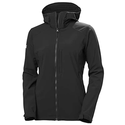 A hooded softshell jacket designed for versatility in any athletic output Warm, flexible and breathable, this multifunctional hooded softshell jacket has fleece backing and weather resistant properties The water-repellent treatment is PFC-free, and the jacket is responsibly made with the certified bluesign textile manufacturing process – wins for you and the environment Shell: 90% Polyester (Recycled), 10% Elastane Items delivered: 1x Helly Hansen Womens Paramount Hood Softshell Jacket,L,Black
