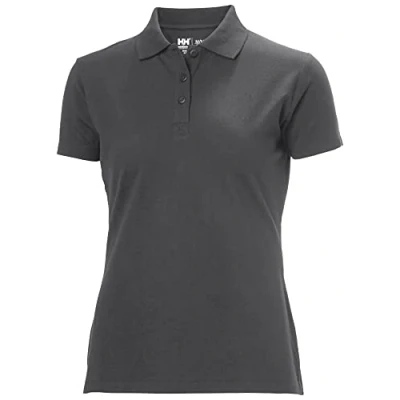 Ribbed collar Buttoned front placket Extra button included Side seams Items delivered: 1x Helly Hansen Workwear W Manchester Polo T-Shirt - Dark Grey XS