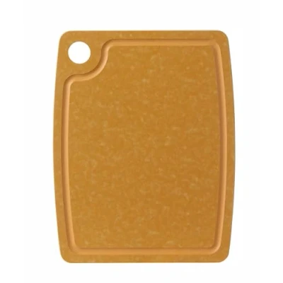 Groove on the edge to catch liquids, reduces spills on countertops Made of wood fiber, denser and more durable than normal natural wood Non-slip feet prevent slipping during use With hanging hole Dishwasher-safe
