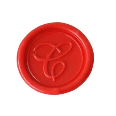 Seal is 24mm in diameter Made from 5mm thick brass Handle is varnished wood and screws into the seal Seal leaves the impression of the letter and a square around the letter within the wax Pack contains the letter C and the wooden handle