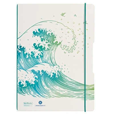 Herlitz 50033645 Flex Notebook, A4, 2 x 40 Sheets, Lines and Squares, Motif: GREENline Wave, 1 Piece