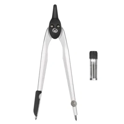 Length of compas: 110 mm La mine est protégée par un rabat Protective cap Rayon: 138 mm, diameter of cercle: 276 mm Contents: compas, boîte de mines de rechange Compass Black