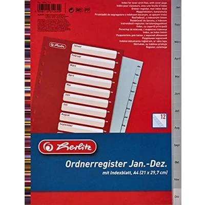 These A4 january to december dividers with preprinted tabs are file dividers for storing and organising paperwork in ring binders and files The classic gray Herlitz indexes are printed both sides with re-inforced tabs and holes These A4 card dividers are ideal for everyday school, university, home and office filing
