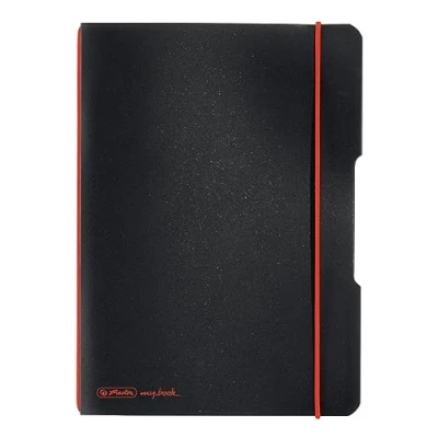 My. book Flex Notebook A5, Herlitz Kariert (5 x 5 mm) with rounded corners Pack of 1 Black Interchangeable polypropylene cover with red elasticated band fastener International products have separate terms, are sold from abroad and may differ from local products, including fit, age ratings, and language of product, labeling or instructions.