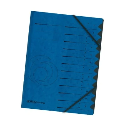 12 compartments with viewing holes and tabs Strong quality cardboard on the outside, black manila cardboard inside With organisational print 1-12, 2 elastic bands Colour: blue 1 piece